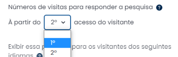 Dica: Para esses casos recomenda-se utilizar a opção de Número de visitas para responder a pesquisa e colocar para a pesquisa A - aparecer no 1º acesso do visitante e a pesquisa B - aparecer no 2º acesso do visitante, assim você garante que aquele mesmo visitante responderá a outra pesquisa quando ele retornar em seu estabelecimento.