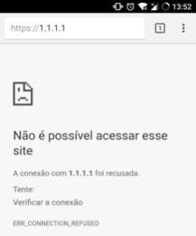 O erro a seguir ocorre devido ao DNS 1.1.1.1 ter sido adicionado como um site conhecido na versão 67 do Google Chrome