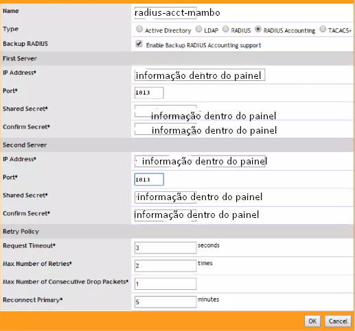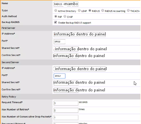 Acesse “Configure” -> “AAA Servers” -> “Create New”. Para configurar o Radius é necessário encontrar algumas informações no seu painel Mambo.