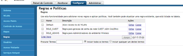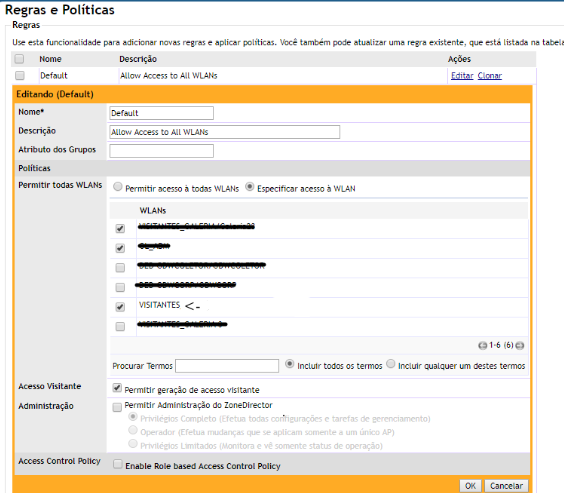 Observação: a WLAN que você criou precisa estar associada à regra "Default" do equipamento: