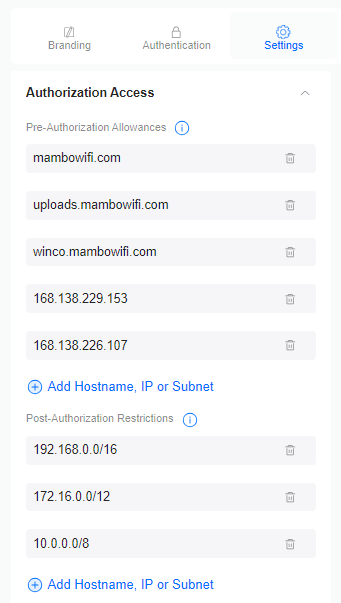Procure a aba “Branding” e a opção "Custom URL" e coloque a URL do cliente correspondente: dominiocliente.mambowifi.com/302 (Exemplo).